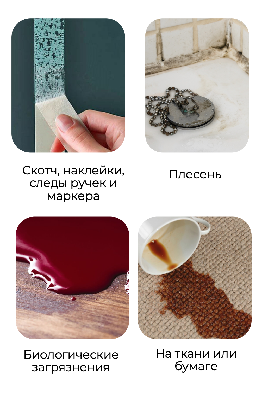 Если в квартире есть такие загрязнения, как: следы скотча и наклеек, а также следы от маркеров, ручек, жвачек - удалять запрещено