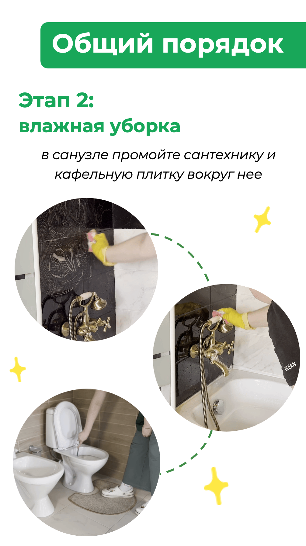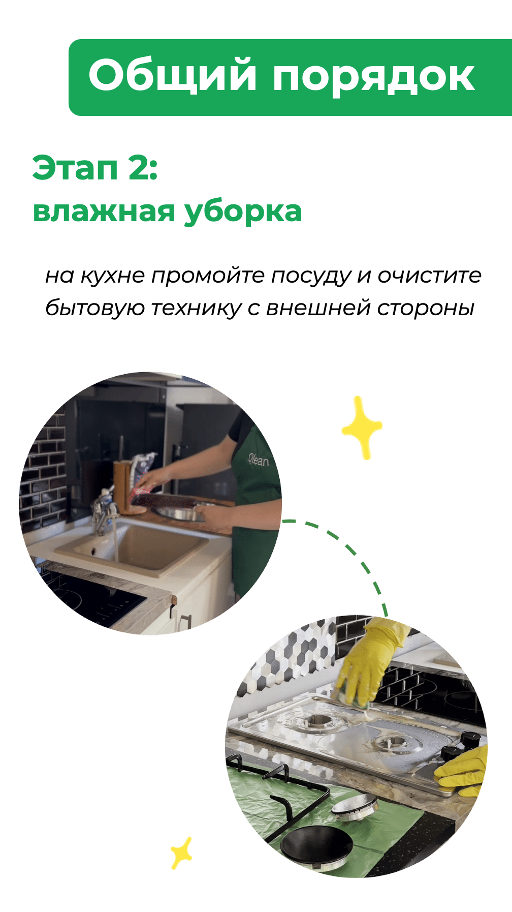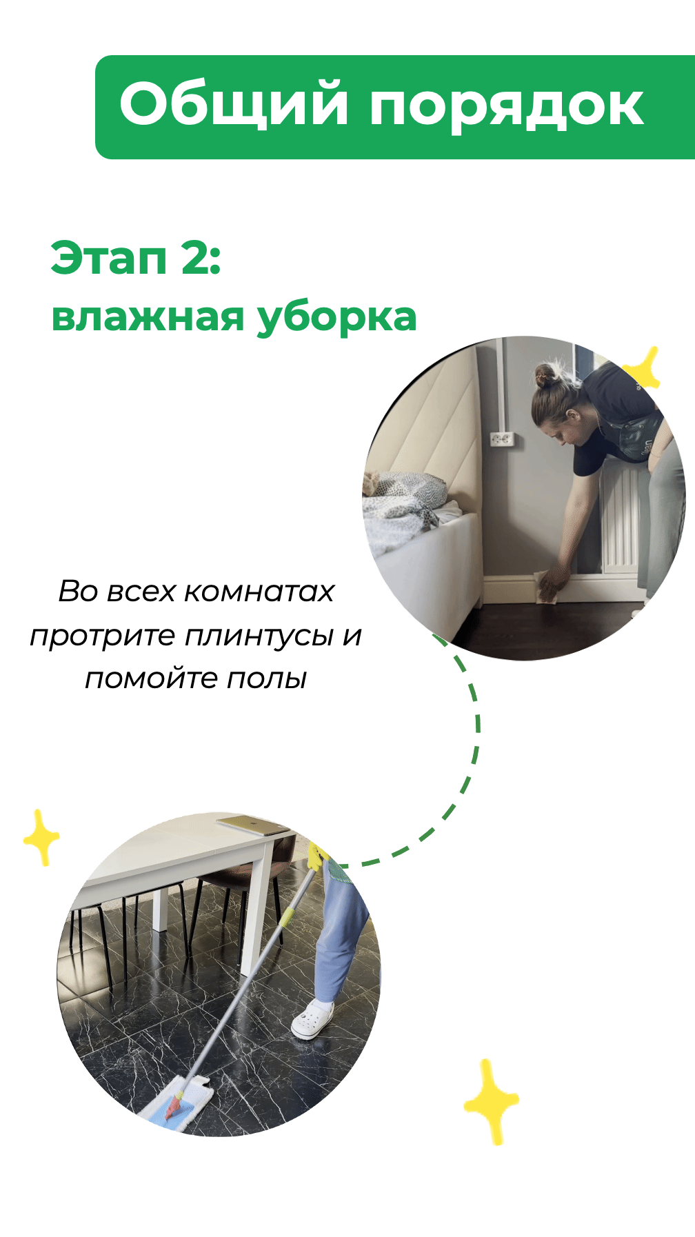 После первого этапа уборки - приступайте к этапу влажной уборки. Действуйте согласно регламенту