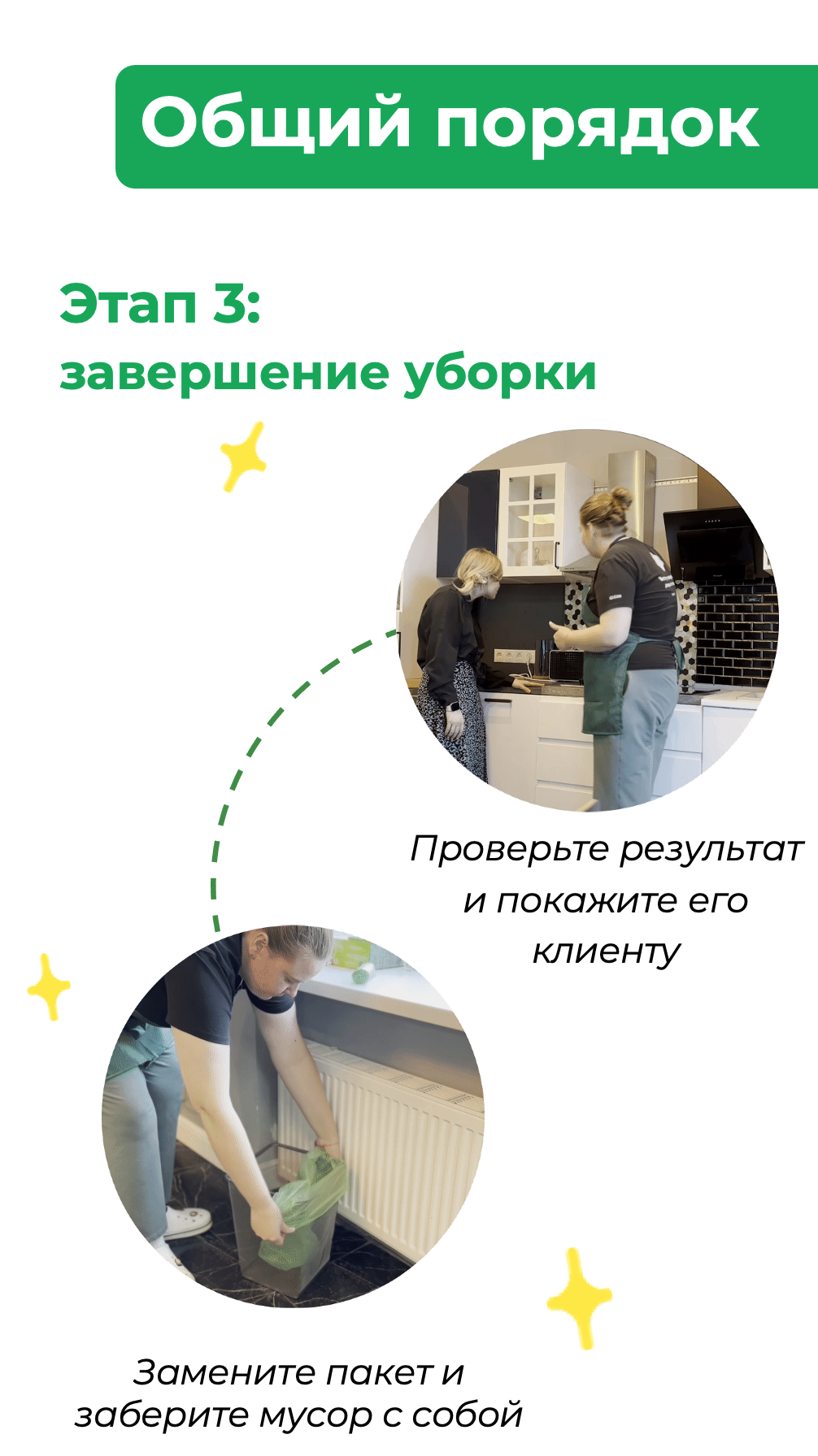 После проведения сухой и влажной уборки приступайте к 3 этапу - завершение заказа