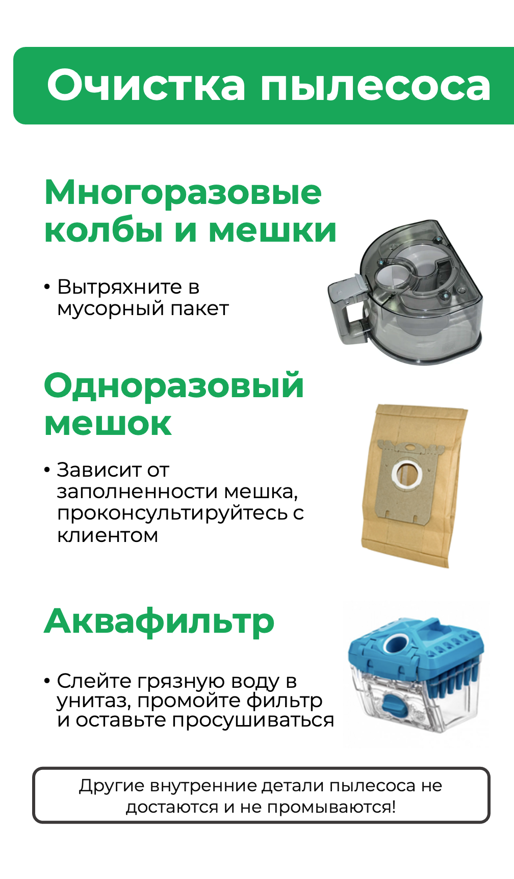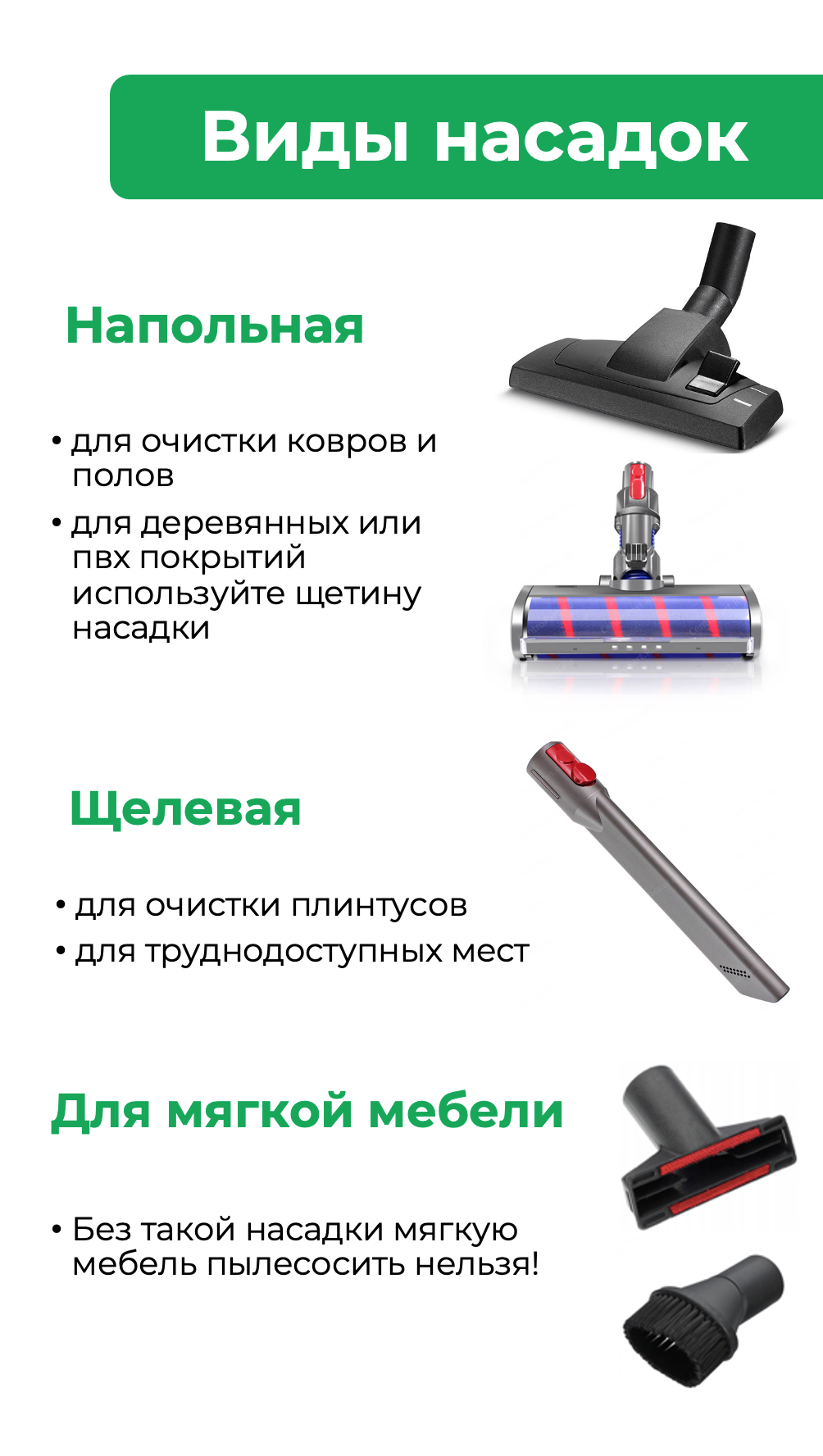 Не забудьте очистить насадки от загрязнений в конце уборки