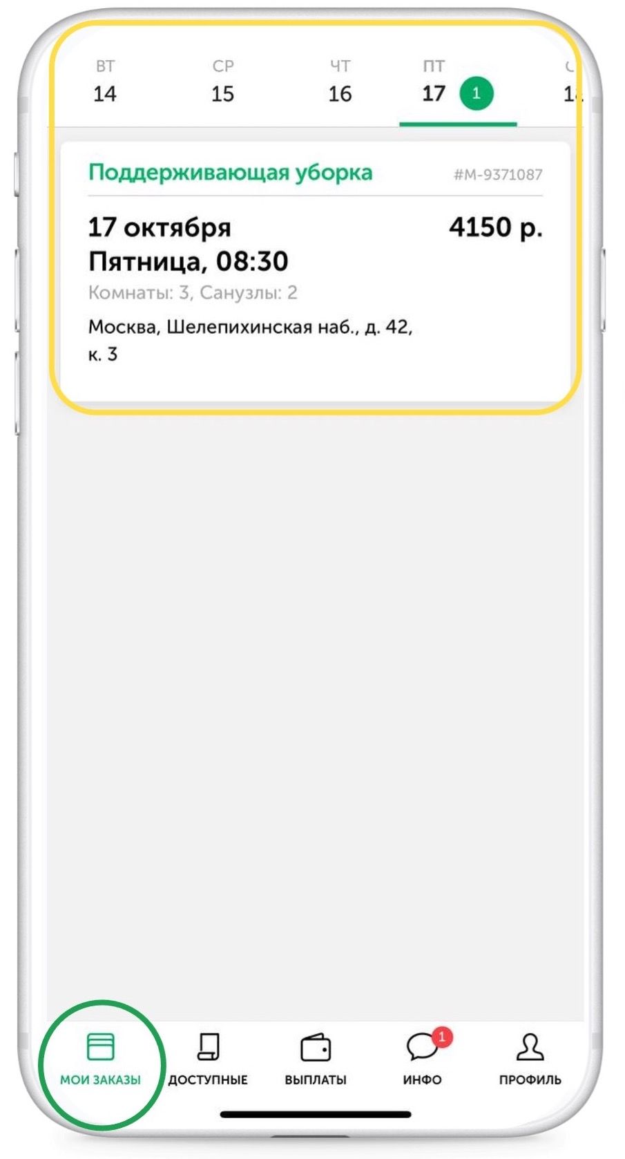 💡 Регулярно проверяйте вкладку, чтобы не пропустить назначение на заказ