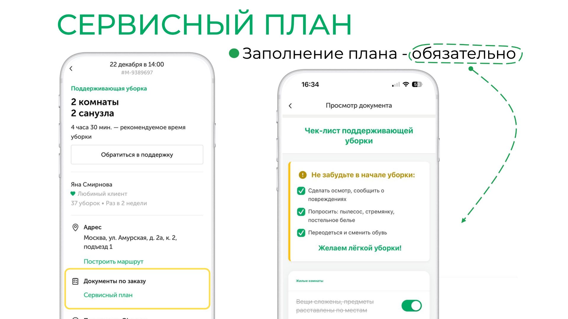 При выполнении заказа, обязательно заполняйте сервисный план. Это ваш чек-лист уборки!