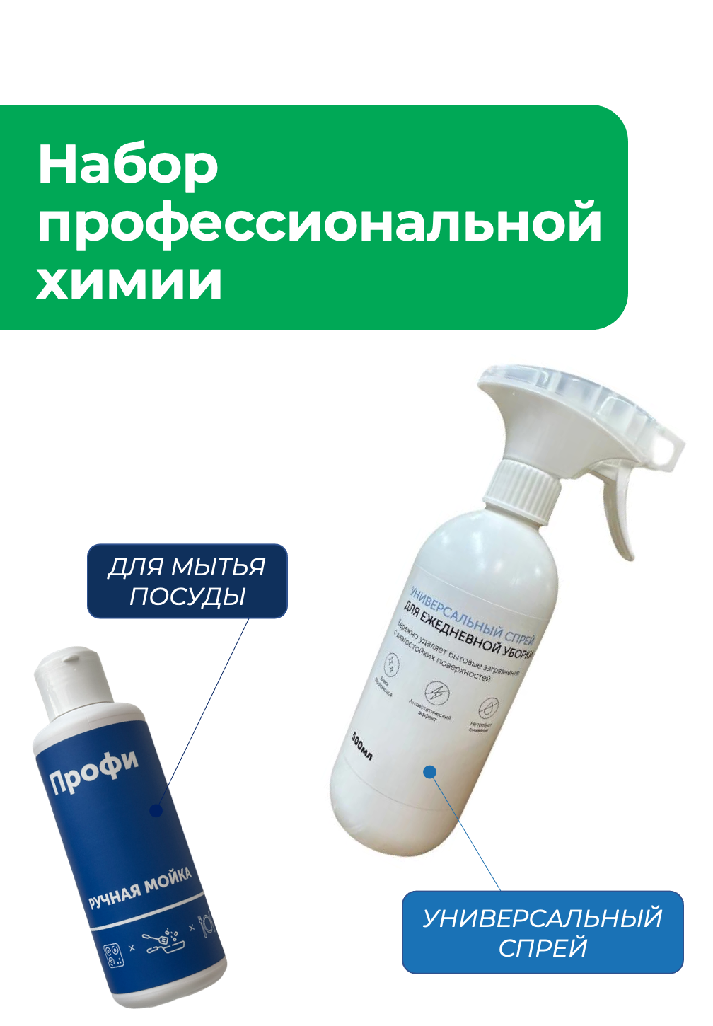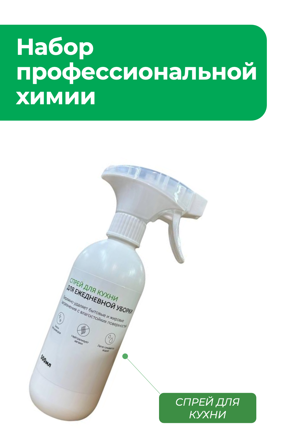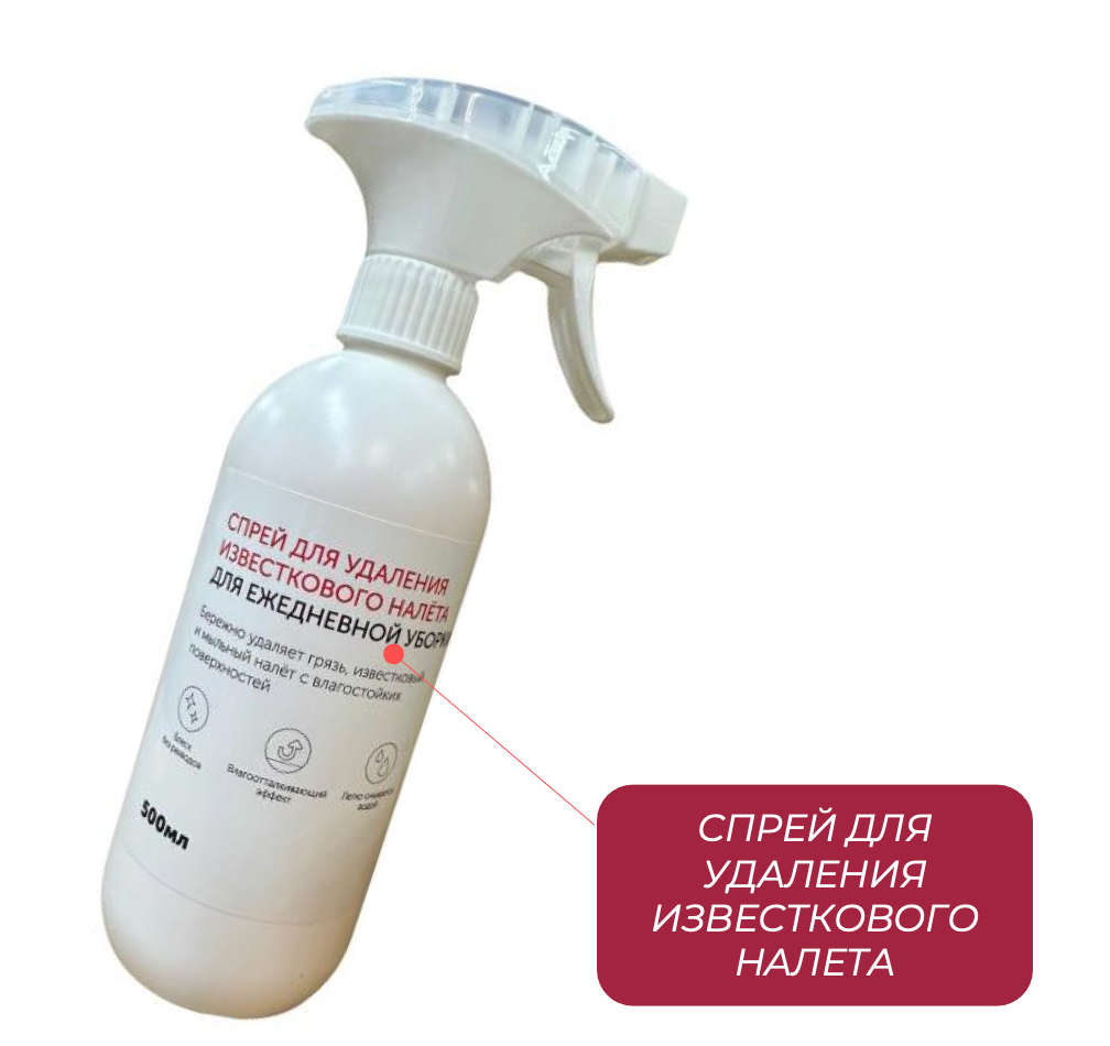 Универсальный спрей - наносим на поверхность, держать можно сколько угодно, далее смываем.
