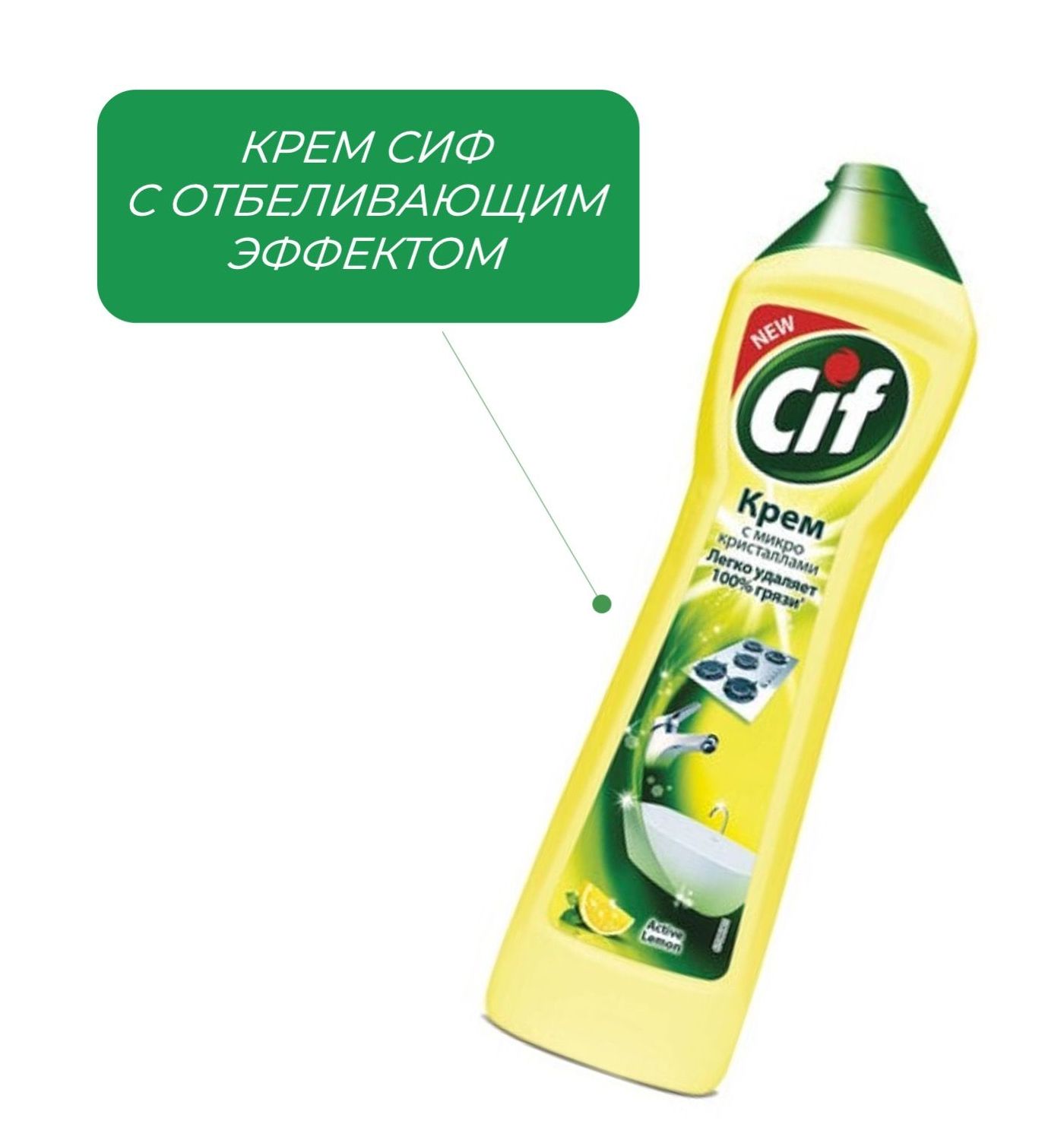 Крем СИФ с отбеливающим эффектом - щелочное средство. Имеет кремовую текстуру с песчинками абразива.